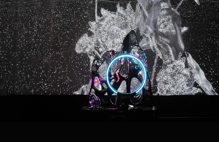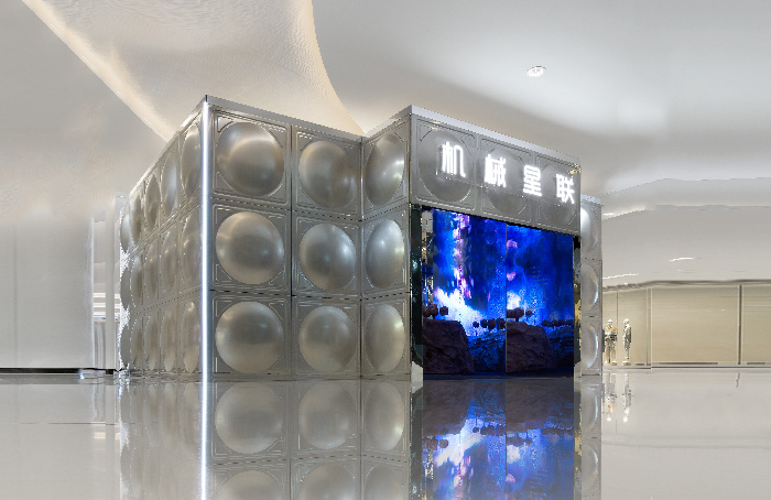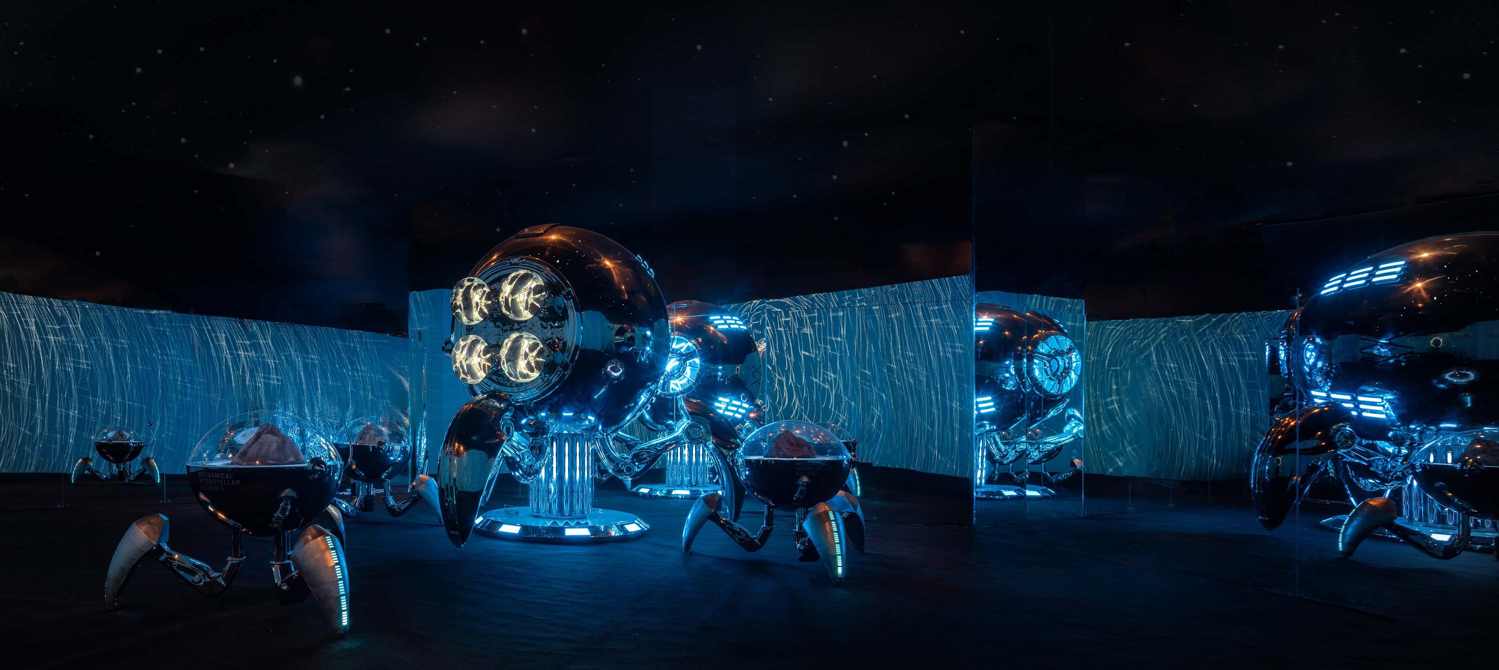 将品牌展示与朋克飞碟组合而成的“航行之眼”,将声光电融入展示领域