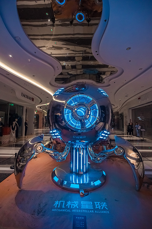 Mecha, cool installation, art, Mechanical Interstellar Alliance as a multi-dimensional focus on urban Mecha culture, art, fashion, space and future ecology of life gathering, mechanical technology and a new future together to commercial space, bring a "super space", from the sensory and visual multi-dimensional experience, break our imagination of complex.