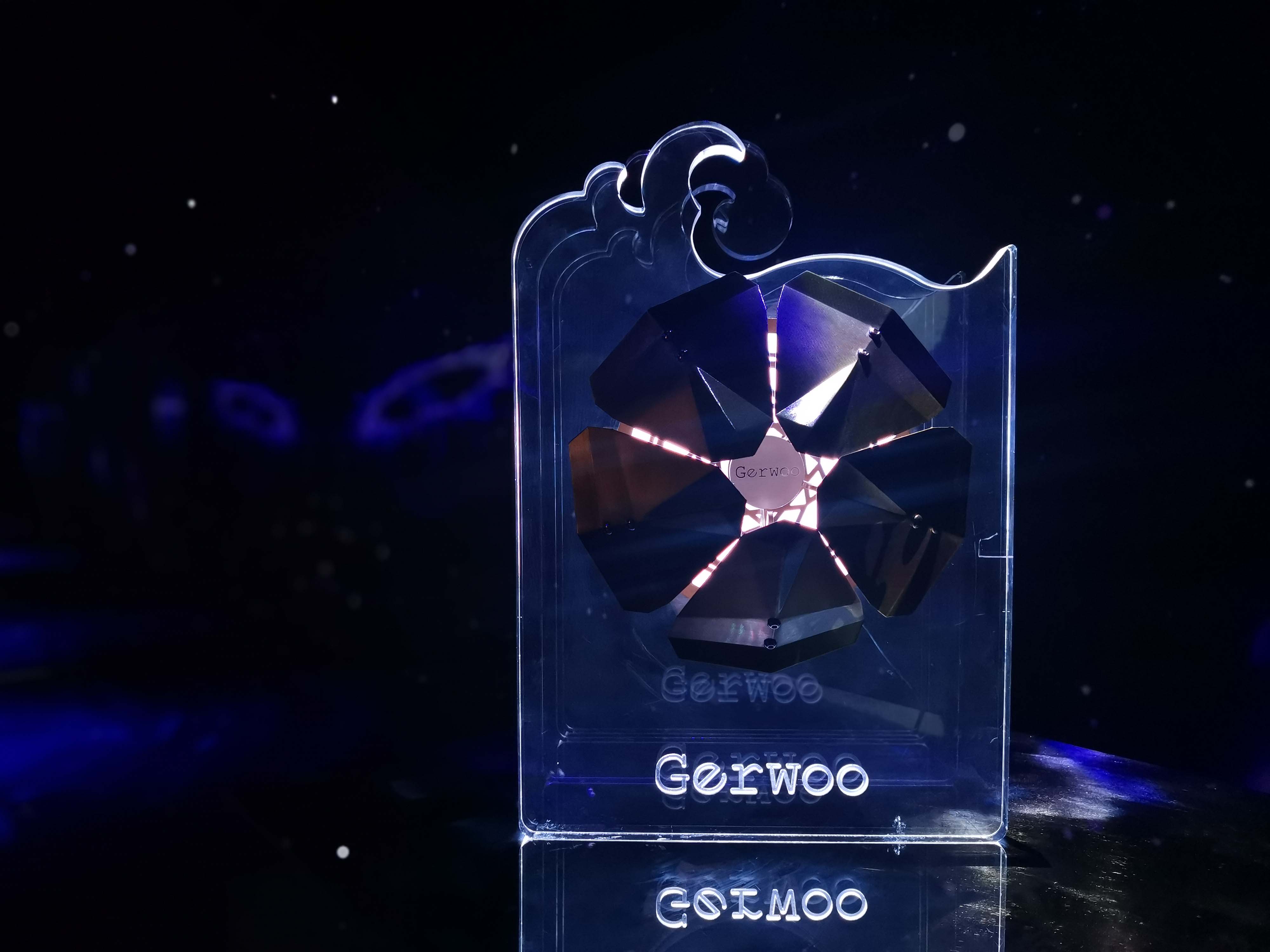 “花系列”动态装置改良版,引入“波浪背纹”,表达机械花在浪间飞舞的场景,让用户体验看见不一样的空间精神。