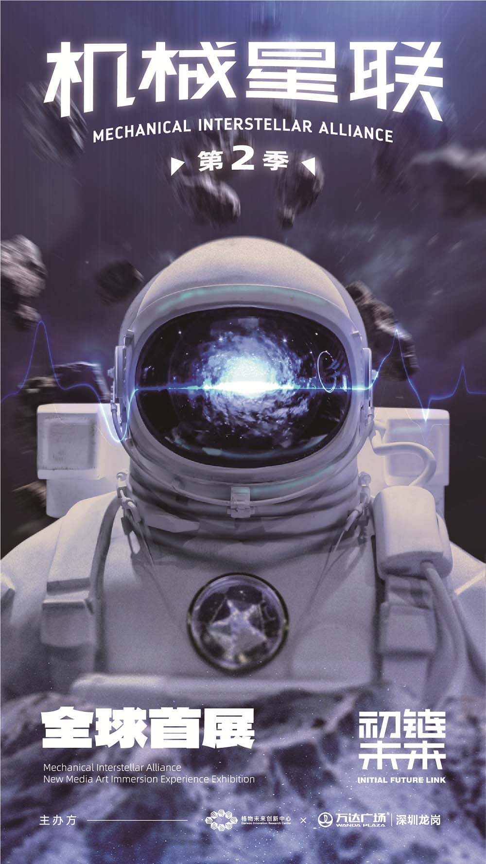 格物互动《机械星联》第2季《初链未来》与深圳首座第四代万达广场联合打造虚实融合极致星际未来穿越沉浸式跨年交互创意。以「在万达过太空年」为主题,用前沿科技艺术,将沉浸式音画交互,实现视听感官双重映射,把局限的现实向外无限延伸至近百年后的未来城市,以未来IP进行生活创意,构建一个全新的策展式商业交互空间。『初链未来』于万达广场进行首次商业巡展,助力品牌突破真实与虚拟的边界,传达更深度的“科技型”前沿综合体的品牌认知。